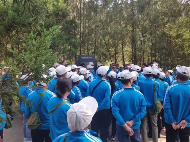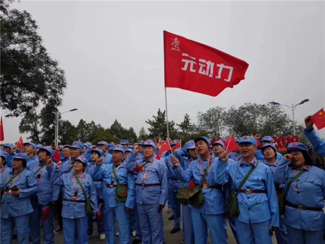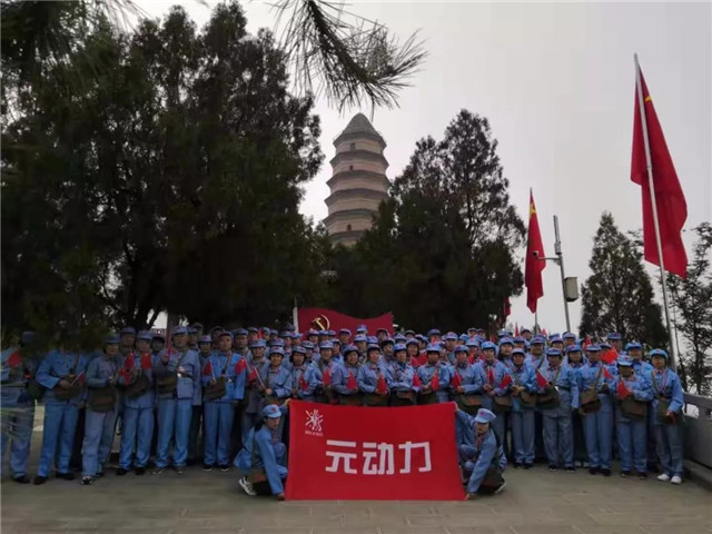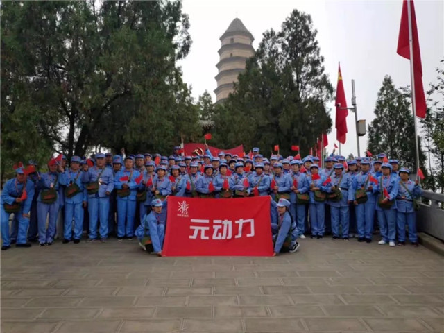 魏巍宝塔山,滚滚延河水,一支“红军”大部队挥舞着国旗,振奋昂扬的踏步走向宝塔山之巅,在宝塔下听着党的辉煌事迹,共同缅怀革命先烈,发扬延安精神。